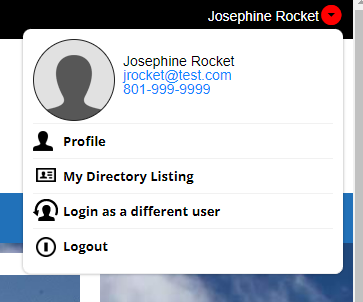 Once logged in, the login prompt is replaced with your name and an arrow. Hover over either of these elements to see the following drop-down panel.