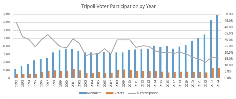 According to Tripoli's bylaws:  "The committee shall solicit candidates and oversee the balloting process for the election of directors."